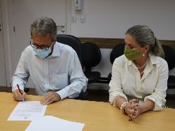 Durante uma reunião, nesta quarta-feira (01), na Secretaria de Saúde do Estado, com a gestora da pasta, Tereza Paim, o prefeito Roberval Meira assinou o termo de cessão de uso para a aquisição de três poltronas, três camas Fawler, um carro de transporte e uma maca fixa.